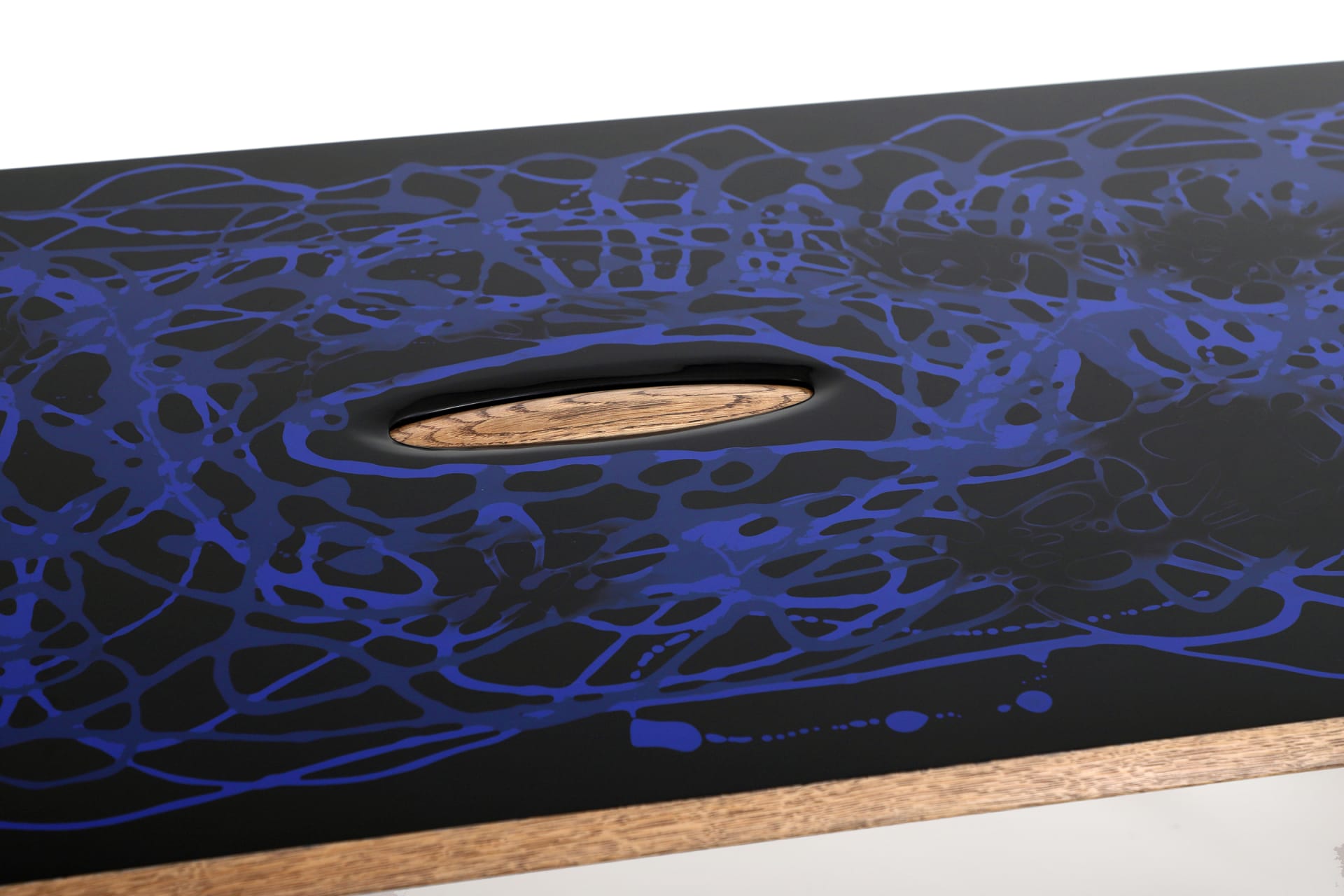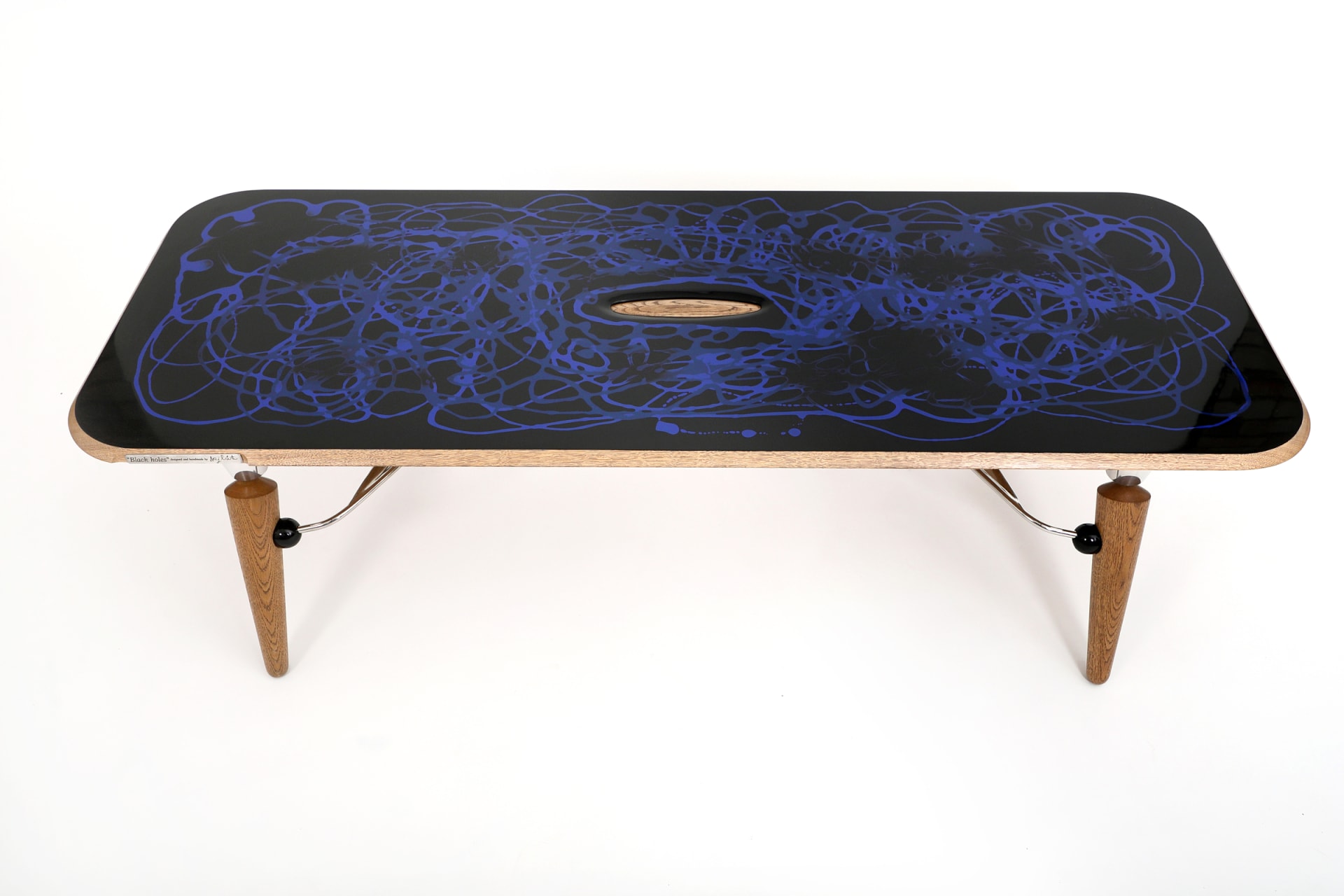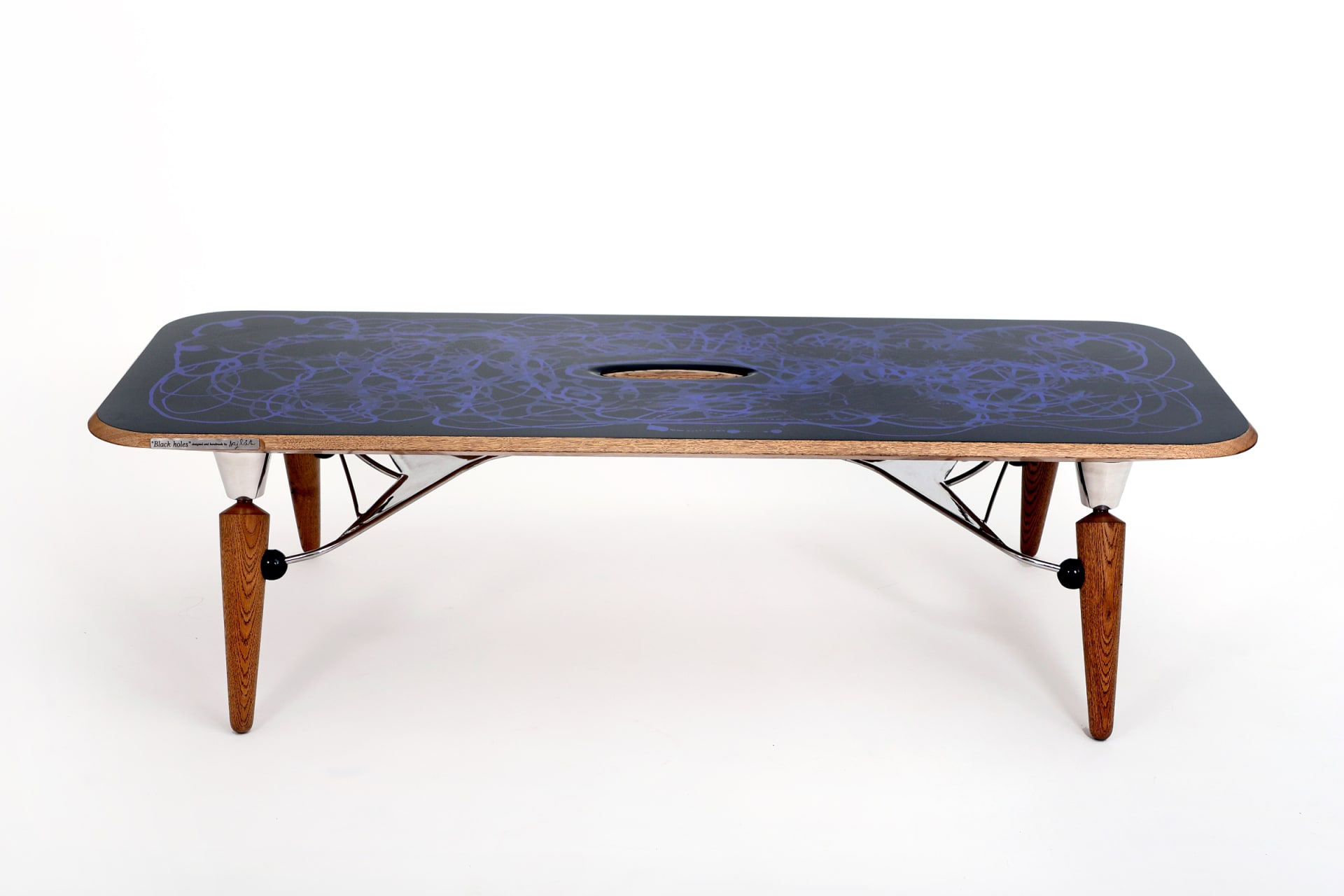 Stolík sa vyznačuje možnosťou nastavenia výšky dosky naklápaním nožičiek pomocou mechanizmu so stredovým súdkom. Samotná doska spolu s nožičkami a stredovým súdkom sú tvorené z dubového dreva. Ostatné komponenty mechanizmu sú z antikorovej ocele, hliníka, mosadze a bronzu. Na doske stola je vytvorený ornament z polyuretánovej farby pre zabezpečenie trvácnosti a oteruvzdornosti úžitkovej plochy. Všetky komponenty sú navrhnuté a vyrobené špecificky pre daný stolík.